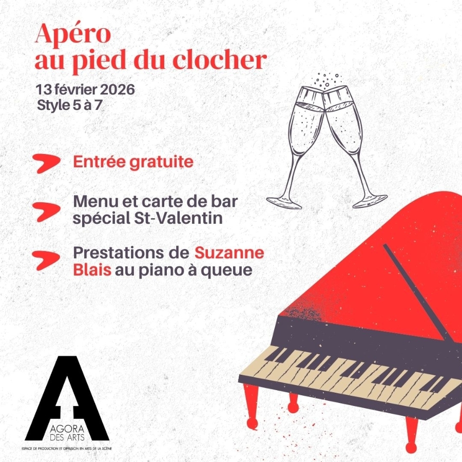 Apéro au pied du clocher -13 février 2026Cette première édition sera présentée sous le thème de la Saint‑Valentin, le 13 février dans le foyer de l’Agora des Arts.